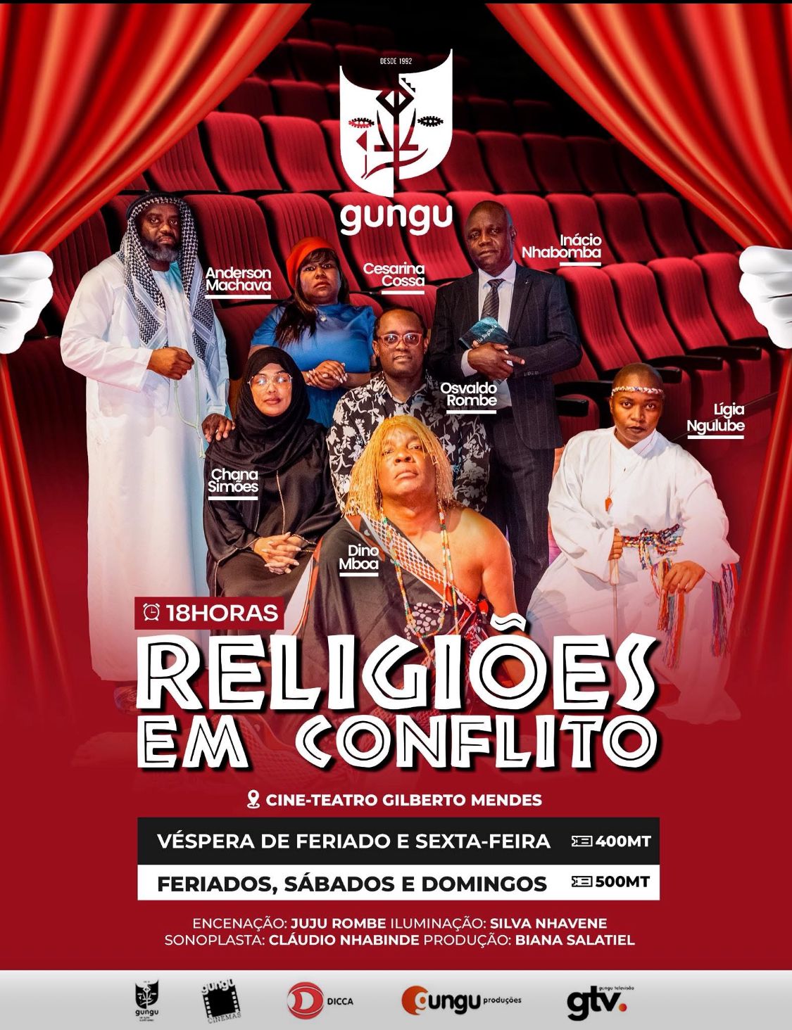 O Teatro Gungu confirmou que a peça “Religiões em Conflito”, um dos maiores sucessos da sua temporada, entra agora na fase final das apresentações. O anúncio foi feito através de vídeos divulgado pelos actores principais, e também publicações em suas redes sociais.